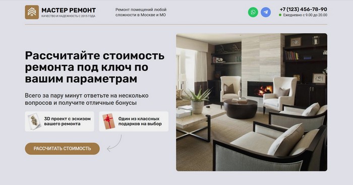Готовый сайт с квиз формой, который можно легко изменить под любую нужную тему. Причем сделать это Вы можете самостоятельно легко и просто в удобном визуальном редакторе